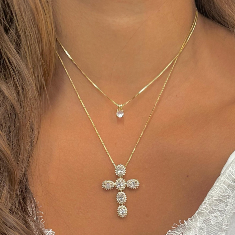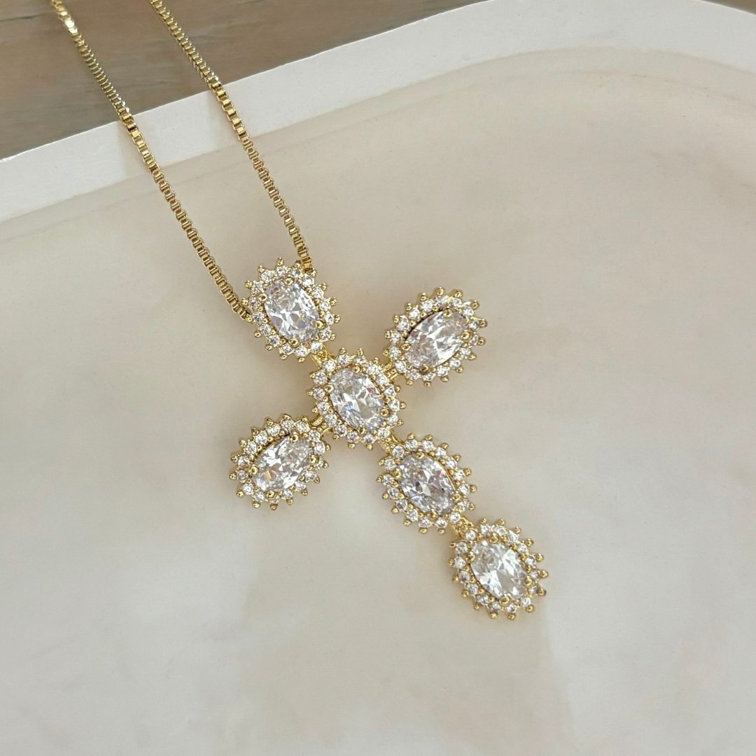 - Material: Bronce con doble baño en oro de 24k y las piedras de la cruz son circones.