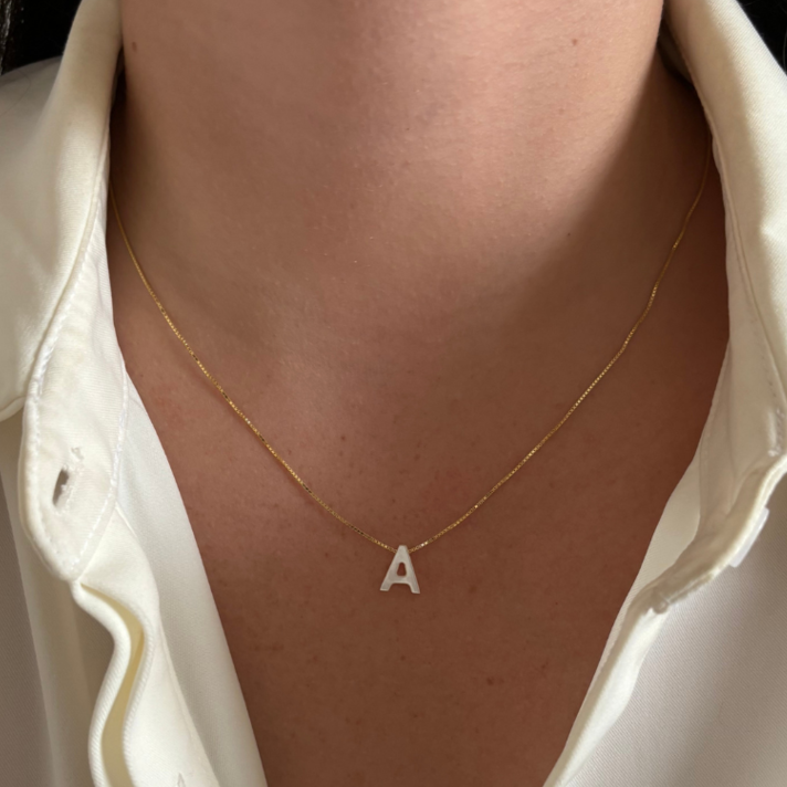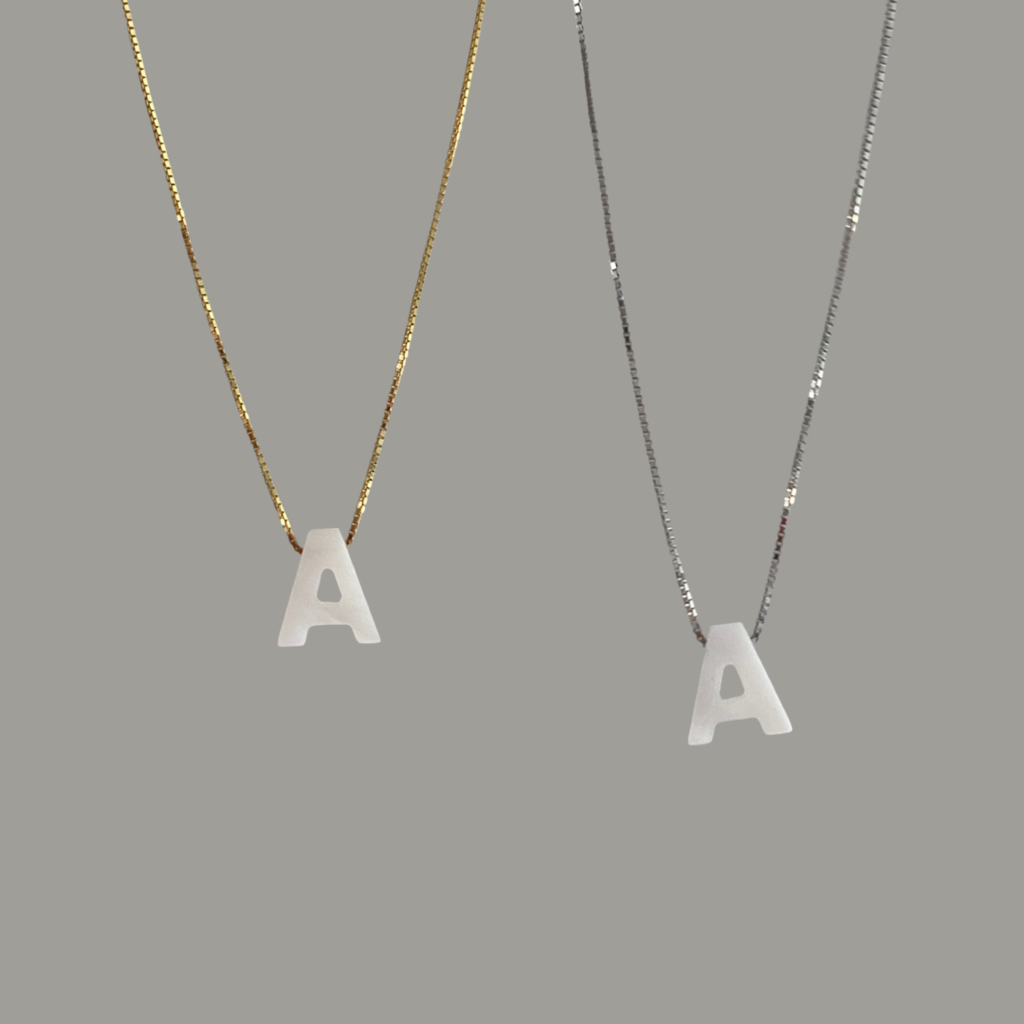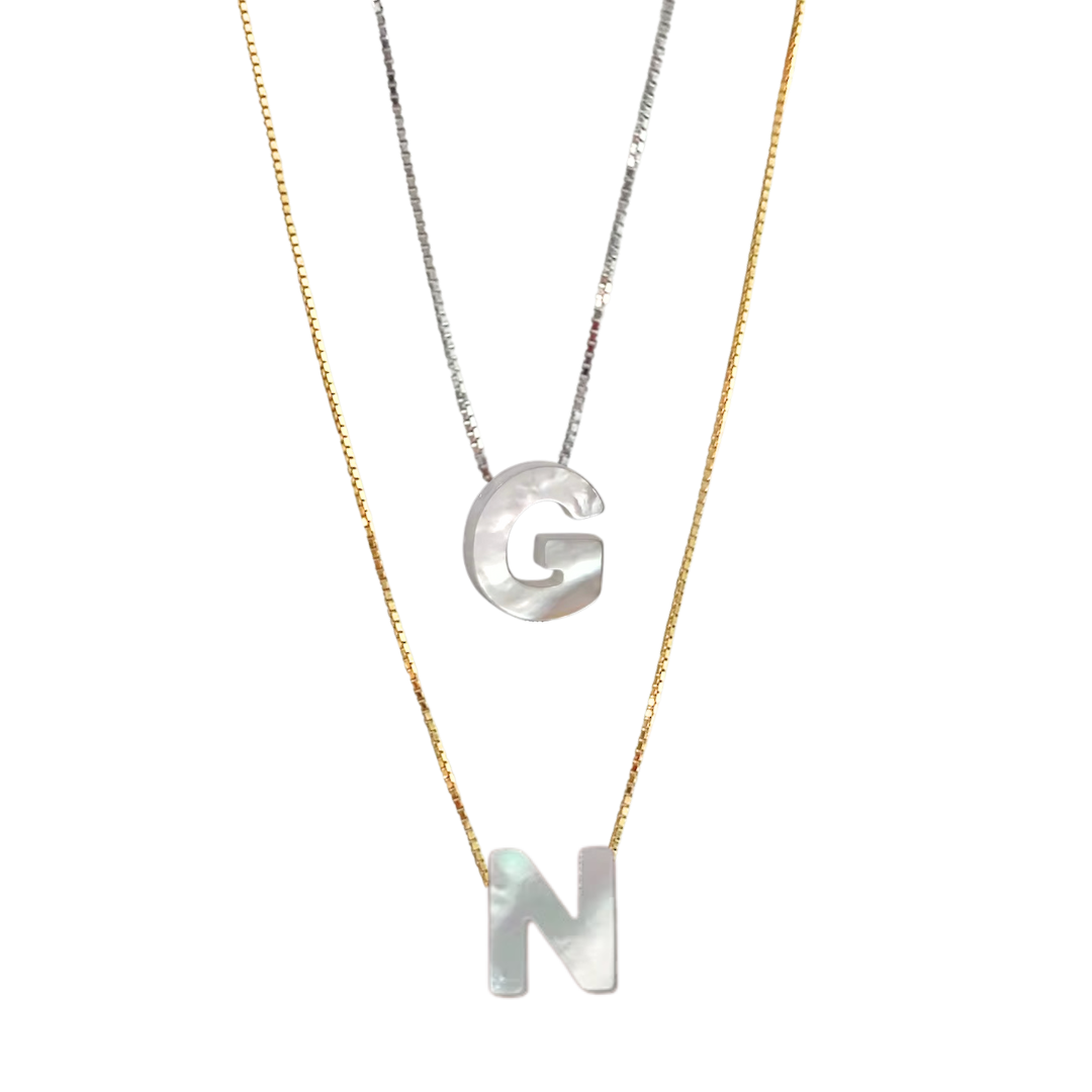 - Material: Cadena en plata 925 rodinada con baño en oro o baño en plata y la inicial es en madre perla.
