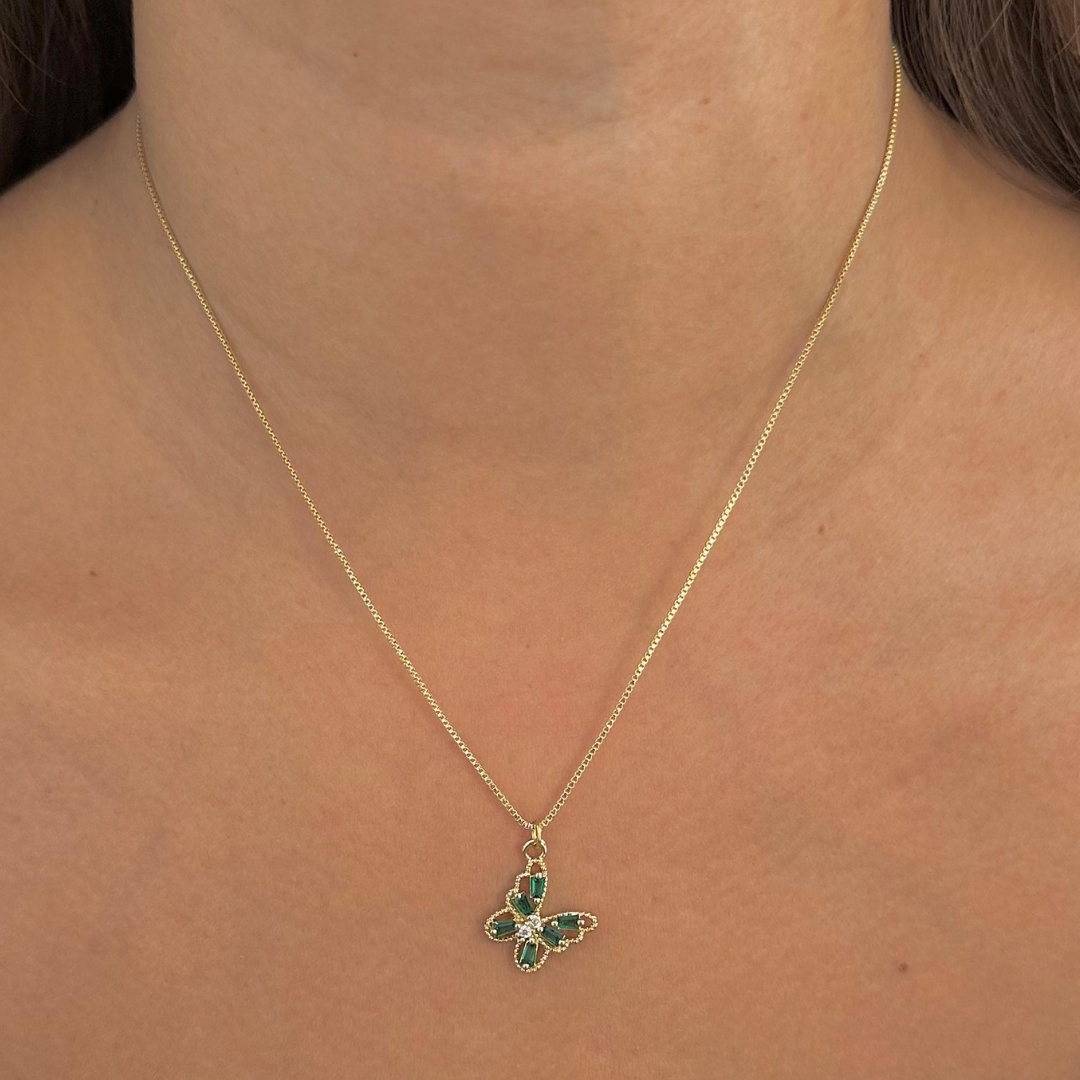 - Dimensiones: Dije Mariposa verde 1.5 cm de alto x 1.5 cm de ancho - Dije Mariposa blanca 1 cm de alto x 1,4 cm de ancho - Cadena graduable de 45cm.