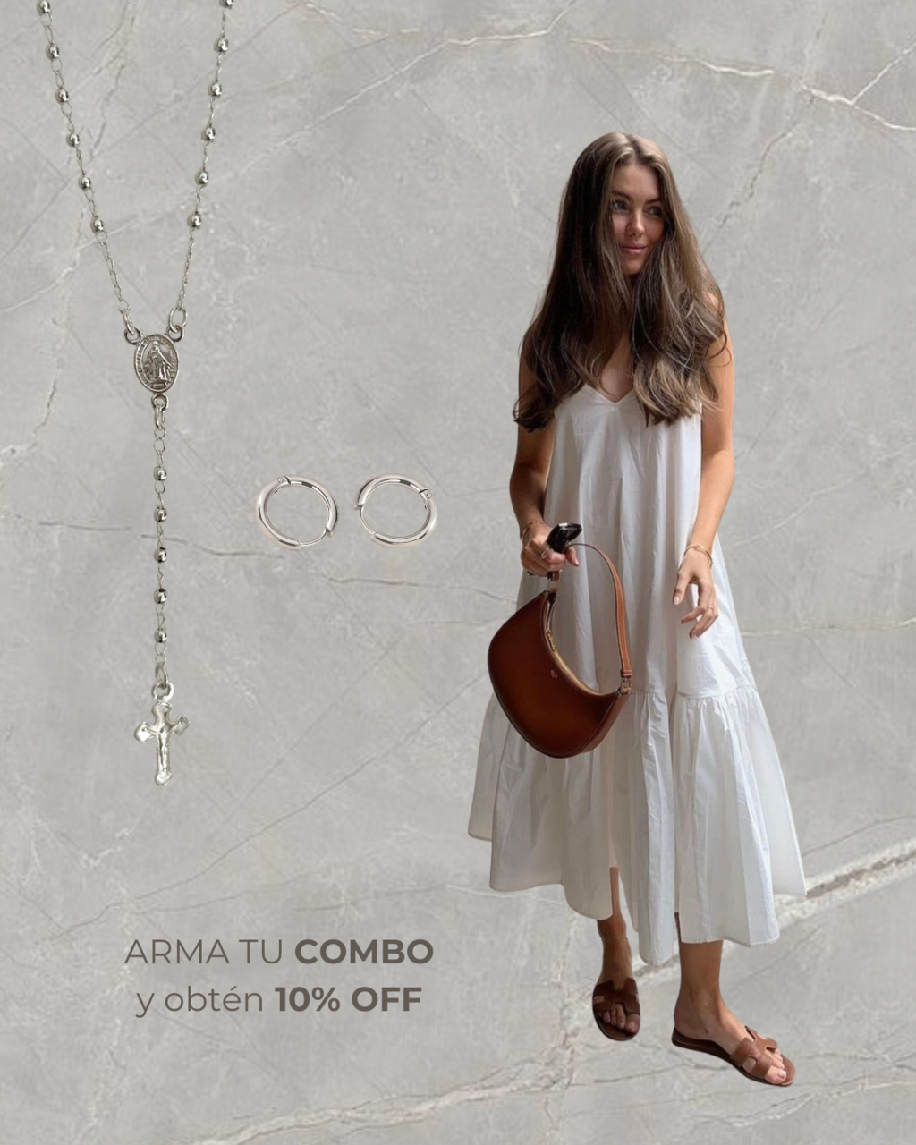 - Material: El Rosario es en plata 925 italiana y las candongas son polarizadas, es decir bronce con doble baño en plata.